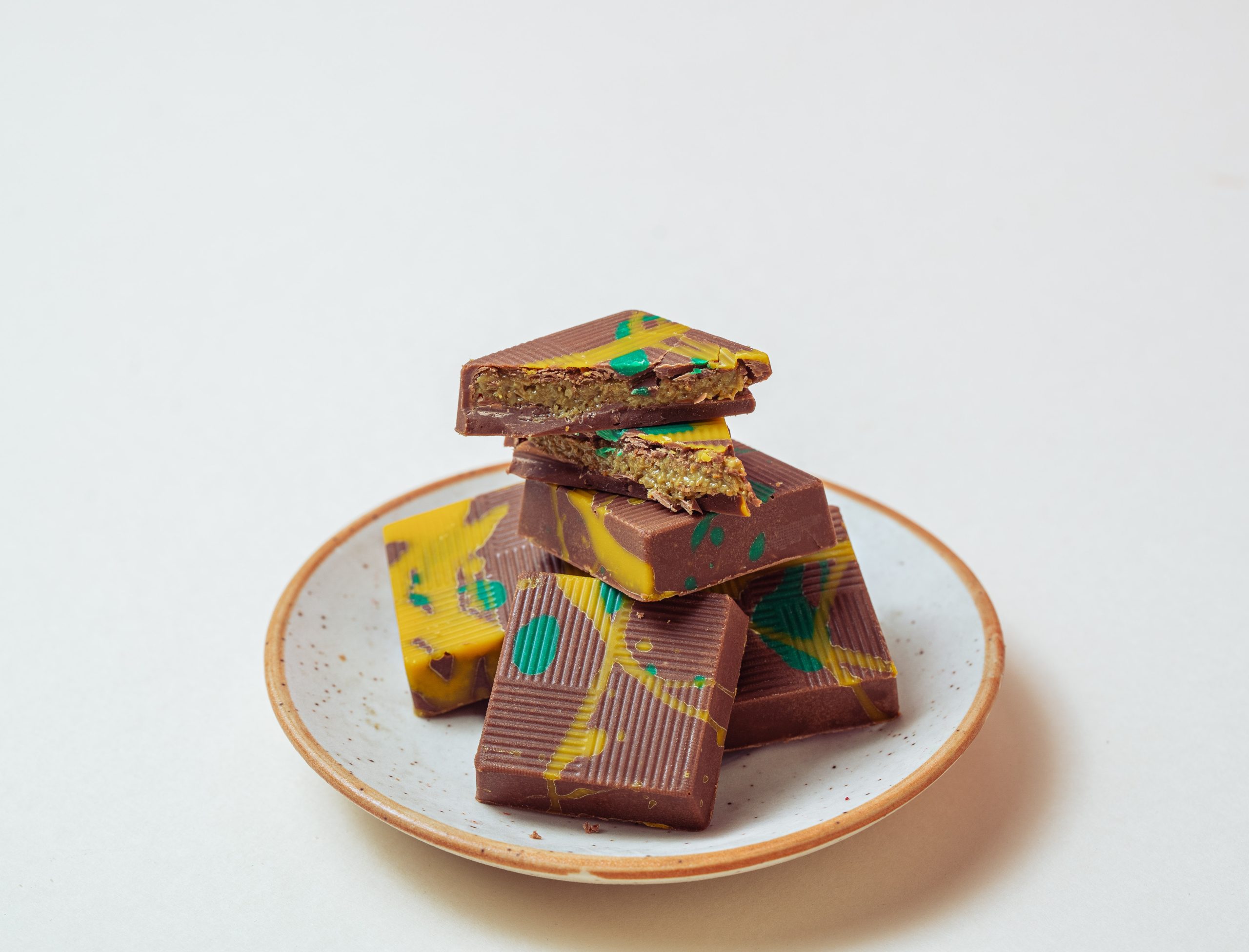 The Viral Dubai Pistachio Kunafa Chocolate in bite sized pieces, perfect to gift and indulge.